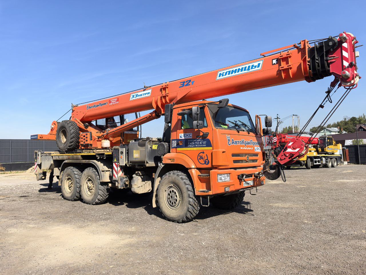 Автокран серии КС 55729-5К-3 «Клинцы» выполнен на шасси КамАЗ 43118, которое характеризуется повышенной маневренностью и проходимостью. Грузоподъемность спецтехники – 32 тонны. В базовой комплектации с 1,5-тонным противовесом и стрелой-телескопом овоидного типа с максимальным вылетом 7,95 метров автокран применяется для строительных, погрузочных и монтажных операций в условиях городской застройки и на рассредоточенных объектах.