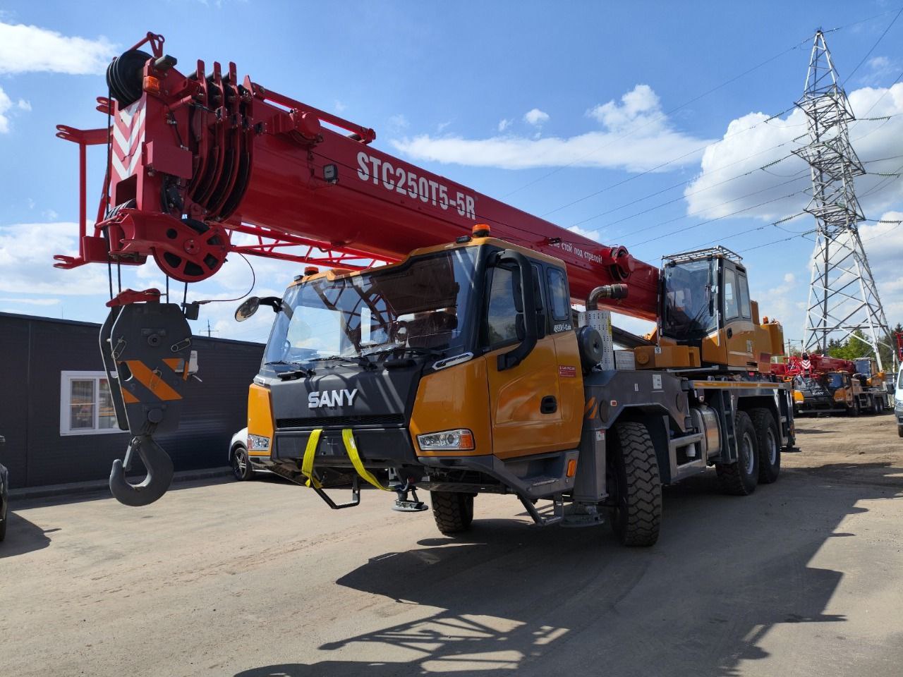 Автокран STC250T5-5R – это универсальный полноприводный автокран, который выпускается компанией SANY Palfinger. Он оснащен стрелой с U-образным профилем длиной 41 метр, а также откидным удлинителем длиной 8 метров. Максимальный грузовой момент основной стрелы составляет 1005 кН·м, а полностью выдвинутой стрелы – 580 кН·м.